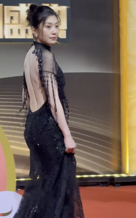 至少她穿着露背装的时候,背部线条是非常抢眼的,一看就是私下里没少健身。