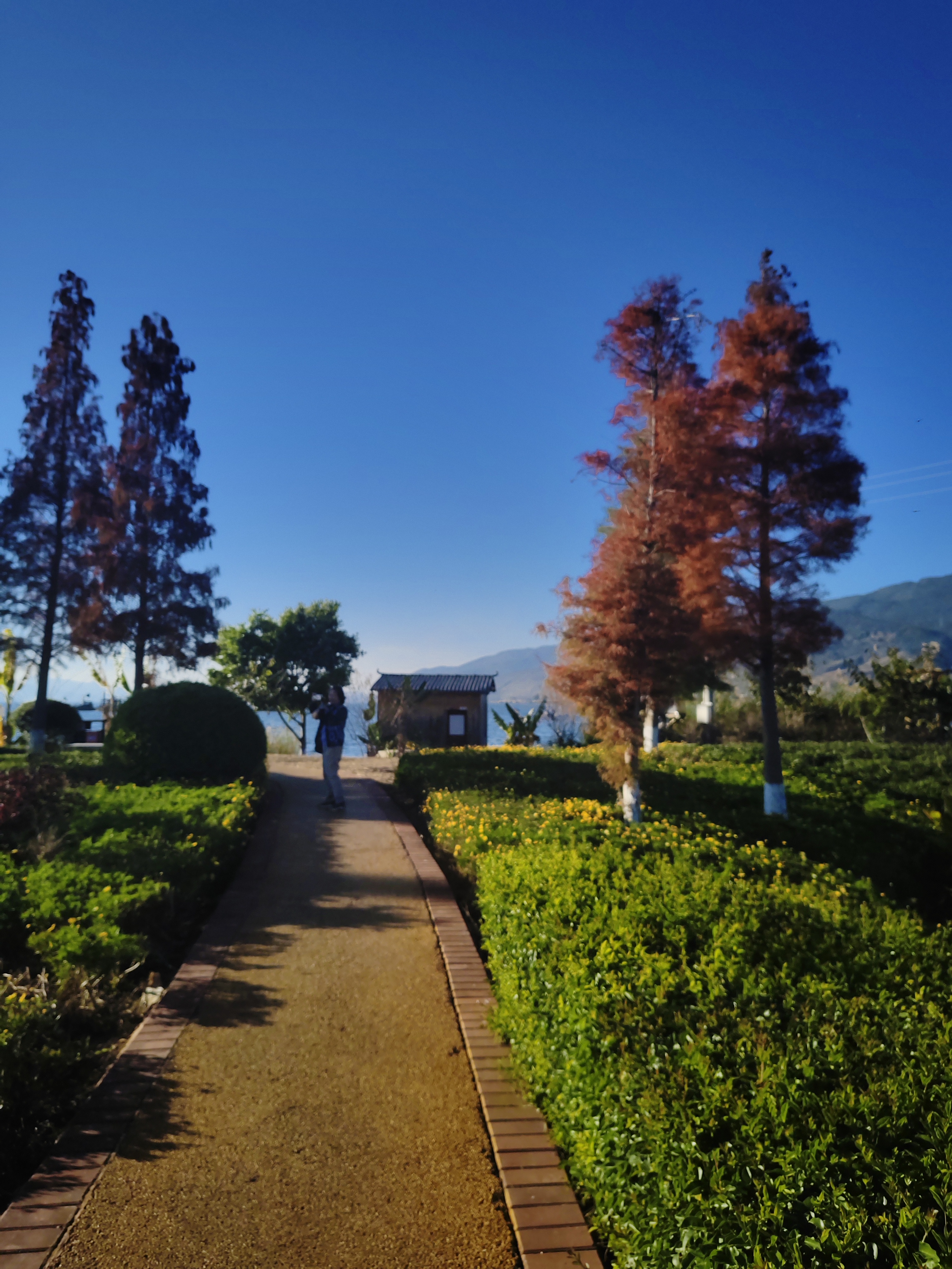 我是一个从山区步入都市讨生活的人,城市的繁华让我获得了我想要的生活。如今年老的我们,总想逃离暄嚣的都市,去寻找清净的悠闲生活之地,避免被繁华所伤。在漫游祖国的过程中,我们形成了一个住宿习惯,坚决不选省会城市,少选地级市,我们选住宿地一般会选县城的江边,湖边和公园边。在选床车宿营地的时候,我们住的最多是村子里的党群活动中心,其次是景区的停车场,实在没有办法就近上高速去住服务区。这次到石屏,我们仍遵循这个原则,不去异龙湖西边的县城,而是去住异龙湖东边的小镇——坝心镇。