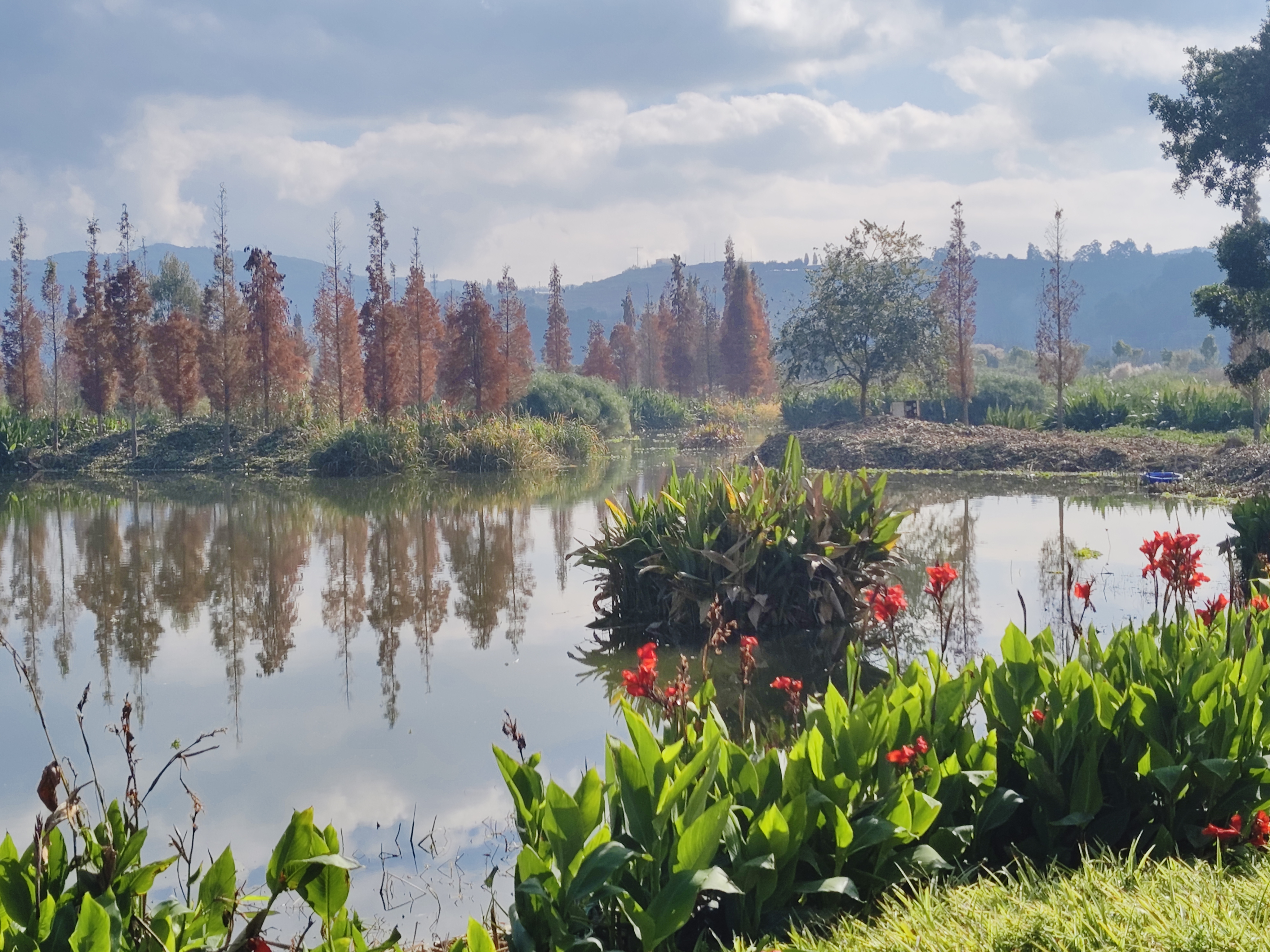 因为我们住在小镇上,这里的游人极少,来这里散步的人大都是当地的老人。没有了人海,便有了清净。清净之地是现代社会的奢侈品。步道修整的很美,道路穿过许多的池塘,这便可以去和池鱼对话,可与小鸟谈天,一路有水的加持,风景怎能不美?