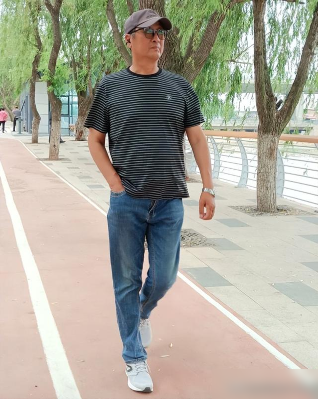 扔掉老气款式,换成小圆领纯色重磅棉T、九分微锥休闲裤(裤长露出脚踝最显利落);外套选牛仔衬衫或轻便夹克,袖子随意卷到手肘,松弛感一下就有了。