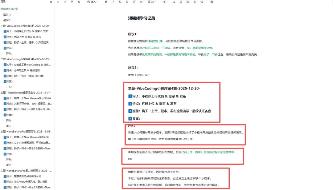 像下面这样,目前每条视频的内容我都会记录下来。