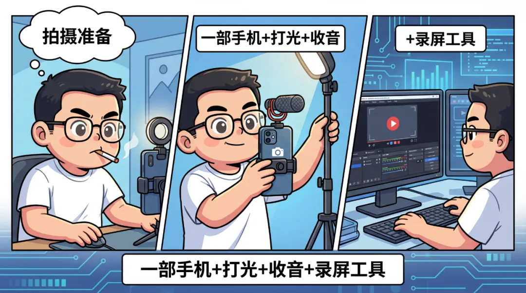 拍摄准备:一部手机+打光+收音+录屏工具