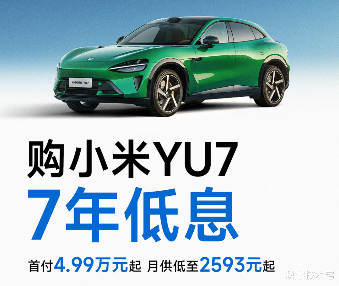 在小米创始人雷军昨晚的直播中,小米官宣新的金融政策——购买小米YU7可以享受7年低息政策,在今年2月28日之前下定,首付4.99万元,月供低至2593元;小宅在小米汽车APP上看了一下,在不选配其他配置的情况下,小米YU7全系列七年分期的利息都是一万多。
