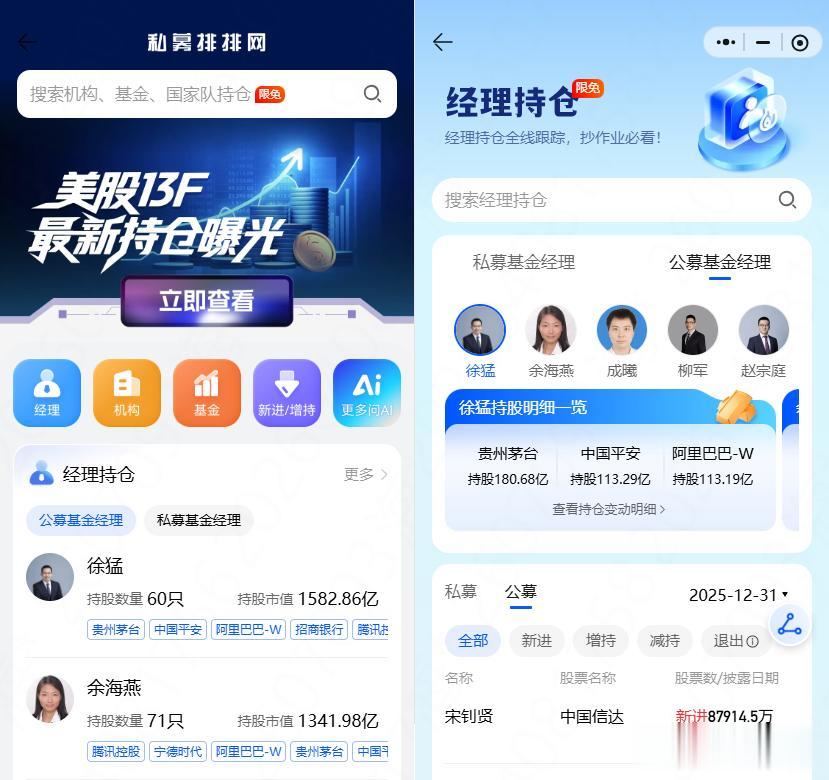 想要查看更多基金经理持仓明细,可以使用私募排排网推出的大佬持仓功能↓↓↓