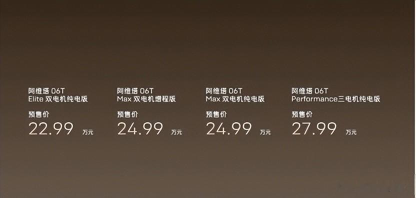 同样在这场发布会中,新款车型阿维塔 06T也同时正式开启预售,该车定位 “智美全场景运动轿车”共推出4款车型版本,预售价22.99万元—27.99万元。现在下订还可享2,000元意向金抵扣 ¥5,000 元大定定金和阿维塔 x 宁德时代联名超薄磁吸充电宝,限量 5,000 份;