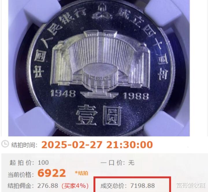 上面这枚全新的1988年建行币,就拍出了7198.88元。