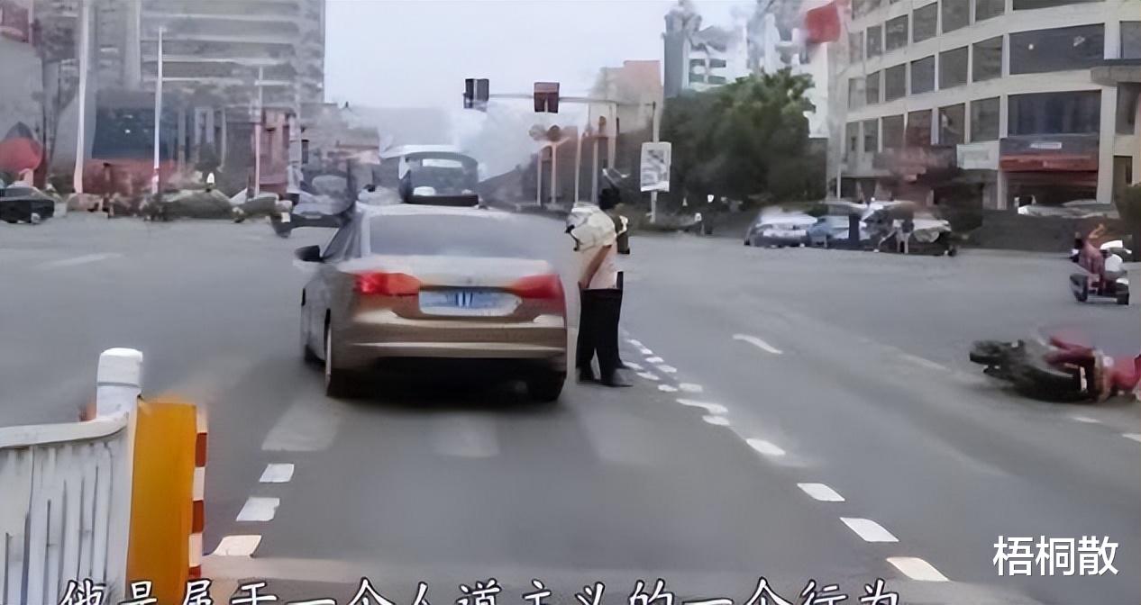 按理说这个时候该是行人停、车子行的时候,居然有些人敢公然违背交通法则,不顾生命危险闯红灯。张先生一看便慌了,不过作为多年老司机,眼疾手快及时刹住了车。可是他再怎么手快,还是让已经发动的车子使出了一段距离,最后不得不将行人撞倒在斑马线上。