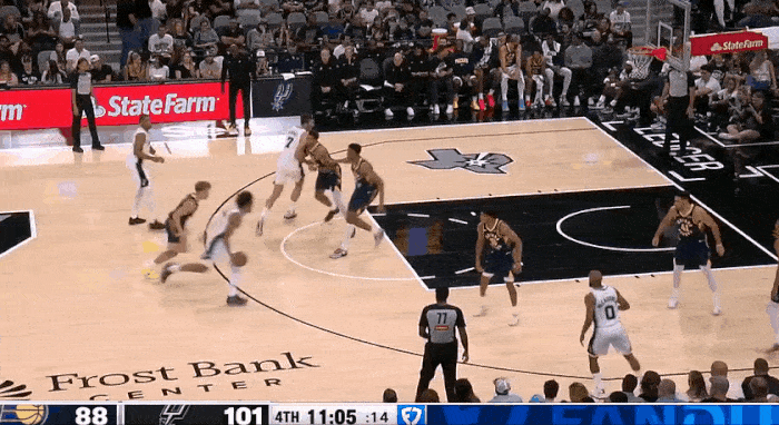 NBA季前赛,马刺对阵步行者的比赛正在进行中。