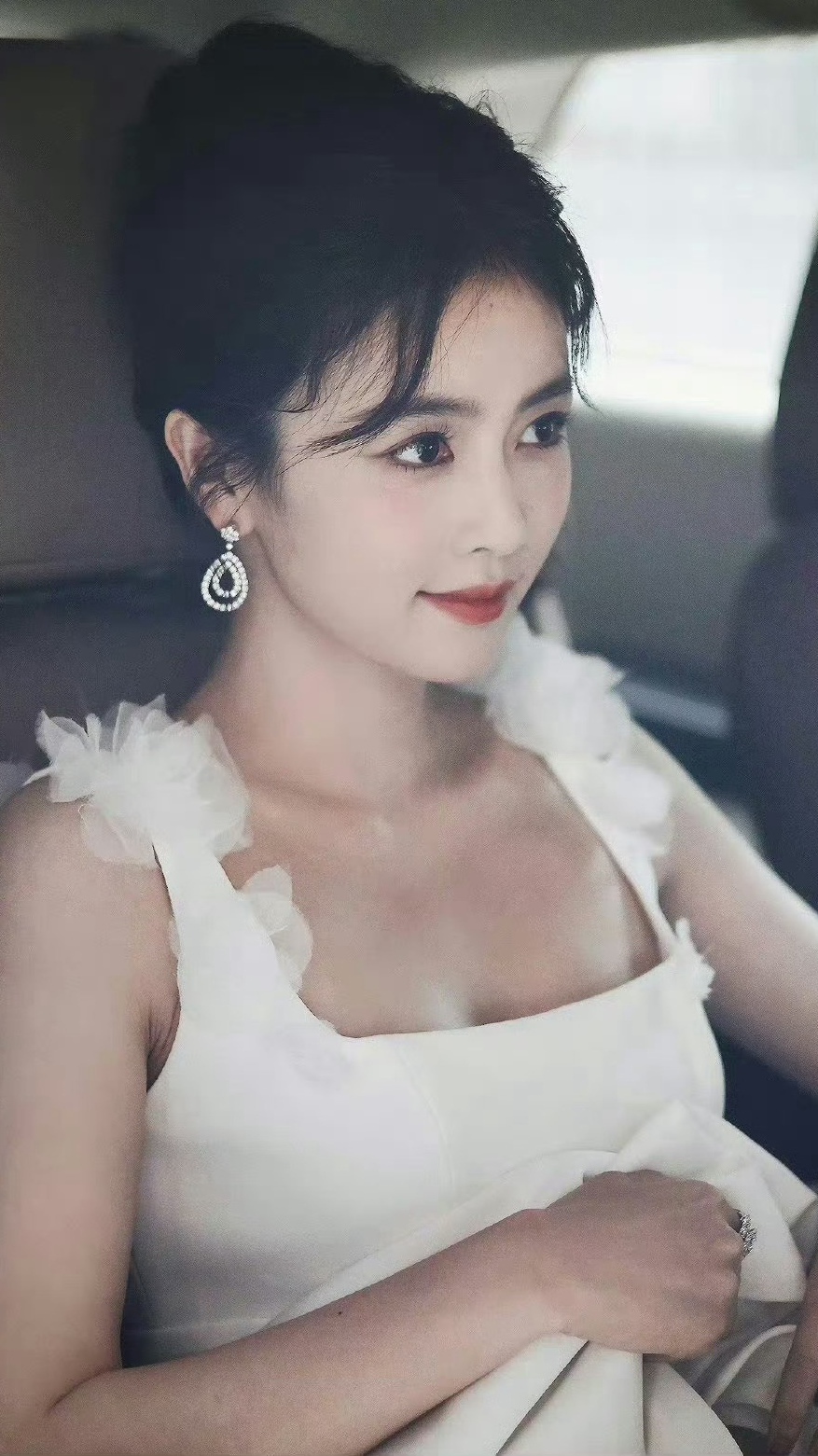 谁懂啊!白鹿这一身白色方领长裙也太杀我了✨
