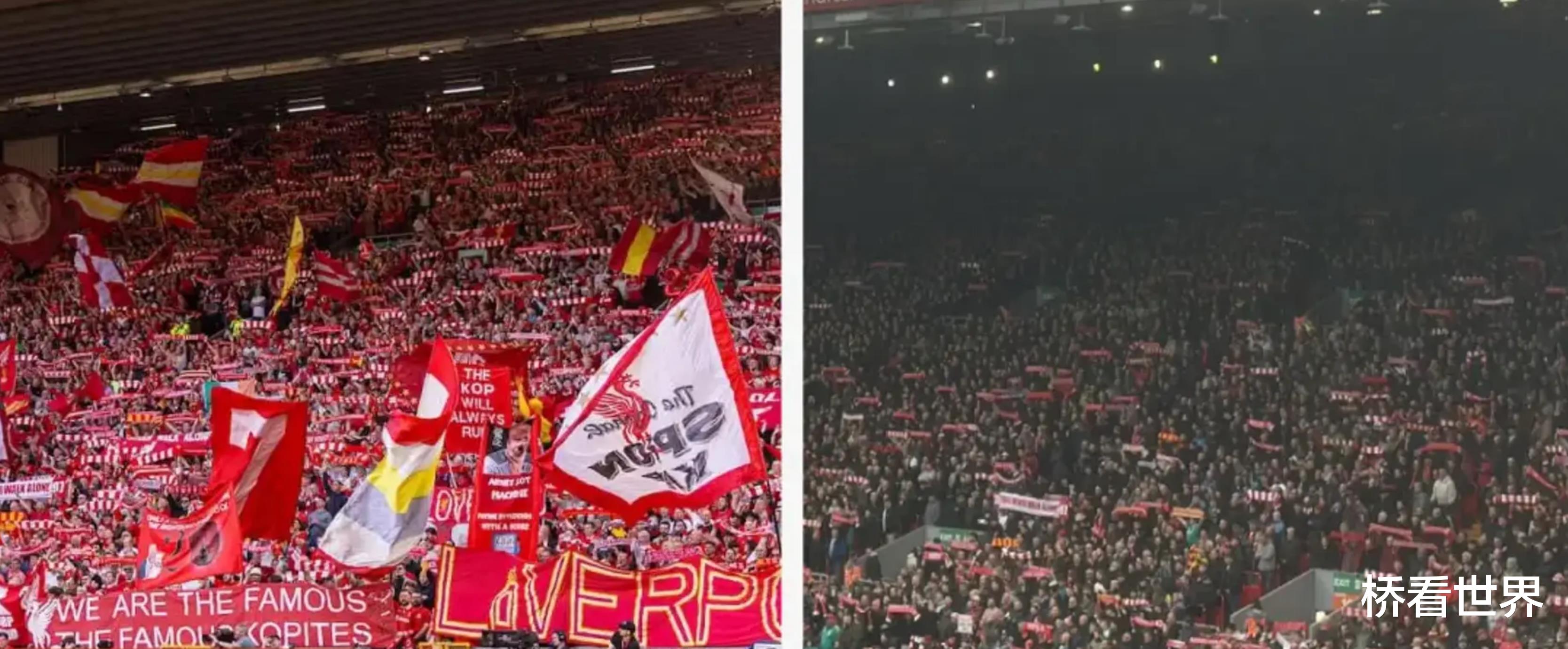 【Kop 看台面目全非,没有任何助威旗帜与标语】