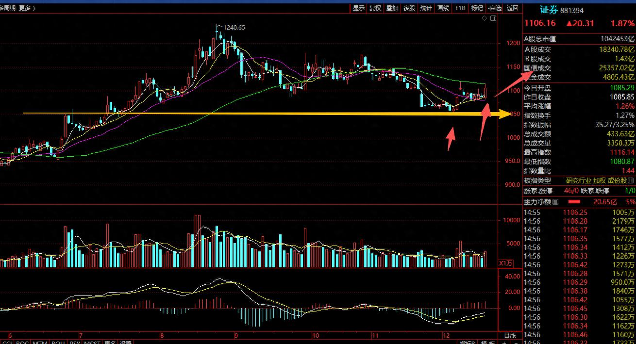 券商延续昨日的弱势低开,早盘围绕0轴缩量震荡,“头羊”在东方—广发—华泰 等之间轮动;午后13时37起,券商开始放量拉升,破60日线后回落,收一条上窜三线的阳线;华泰一度接近涨停,兴业、广发、东方、中建投等紧随其后,板块内仅锦龙下跌。券商昨日“下蹲”,今日“起跳”,因真“头羊”仍未现身,显得力度不够,但不妨碍“旗手”的号角随时吹响,千军万马来相见的景象越来越近......