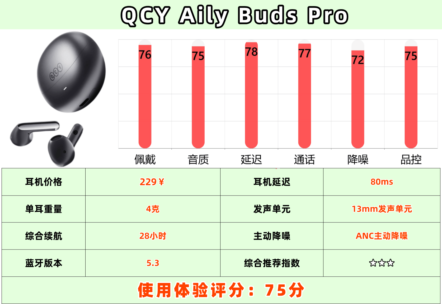 4、Q C Y Aily Buds Pro+蓝牙耳机