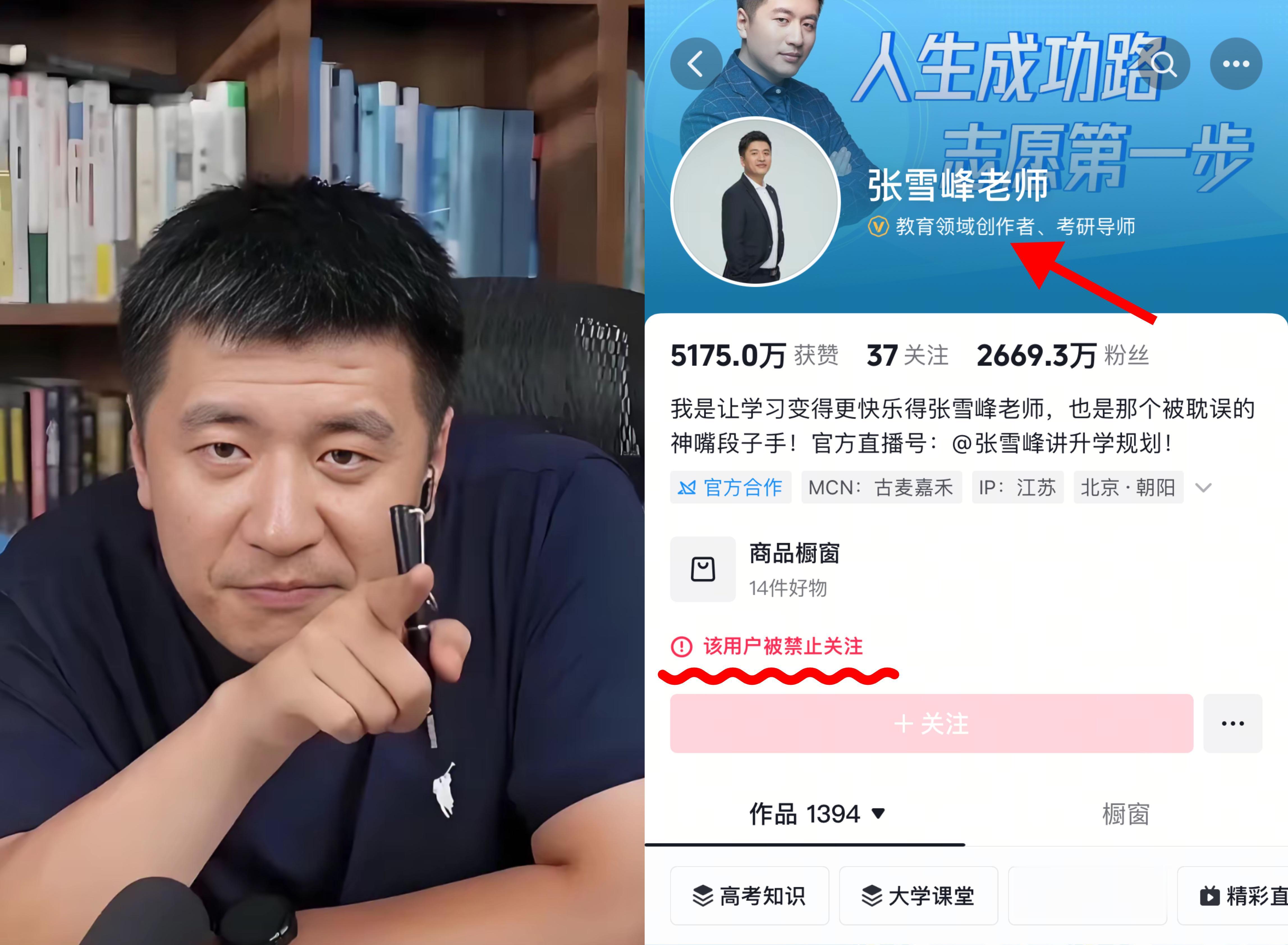 张雪峰曾经历过账号被封禁的低谷,2025年9月,他五个平台的账号同时被禁,累计6500万粉丝的发声渠道一夜切断,这对以IP为核心的他来说,几乎是致命打击。