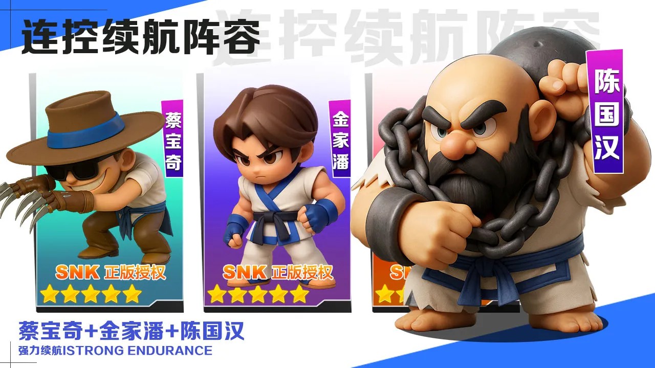 搭配:八神庵 + 草薙京 + 大门五郎 + 雅典娜 + 不知火舞(可选)这套全是容易获取的角色,八神庵和草薙京打双输出,大门五郎前排扛伤,雅典娜回血加 buff,不知火舞想玩女队就加,不想玩就换个过渡输出。推图能轻松过第 40 章,竞技场每天打满次数,稳定在前 300 名,零氪玩家 15 天就能成型。