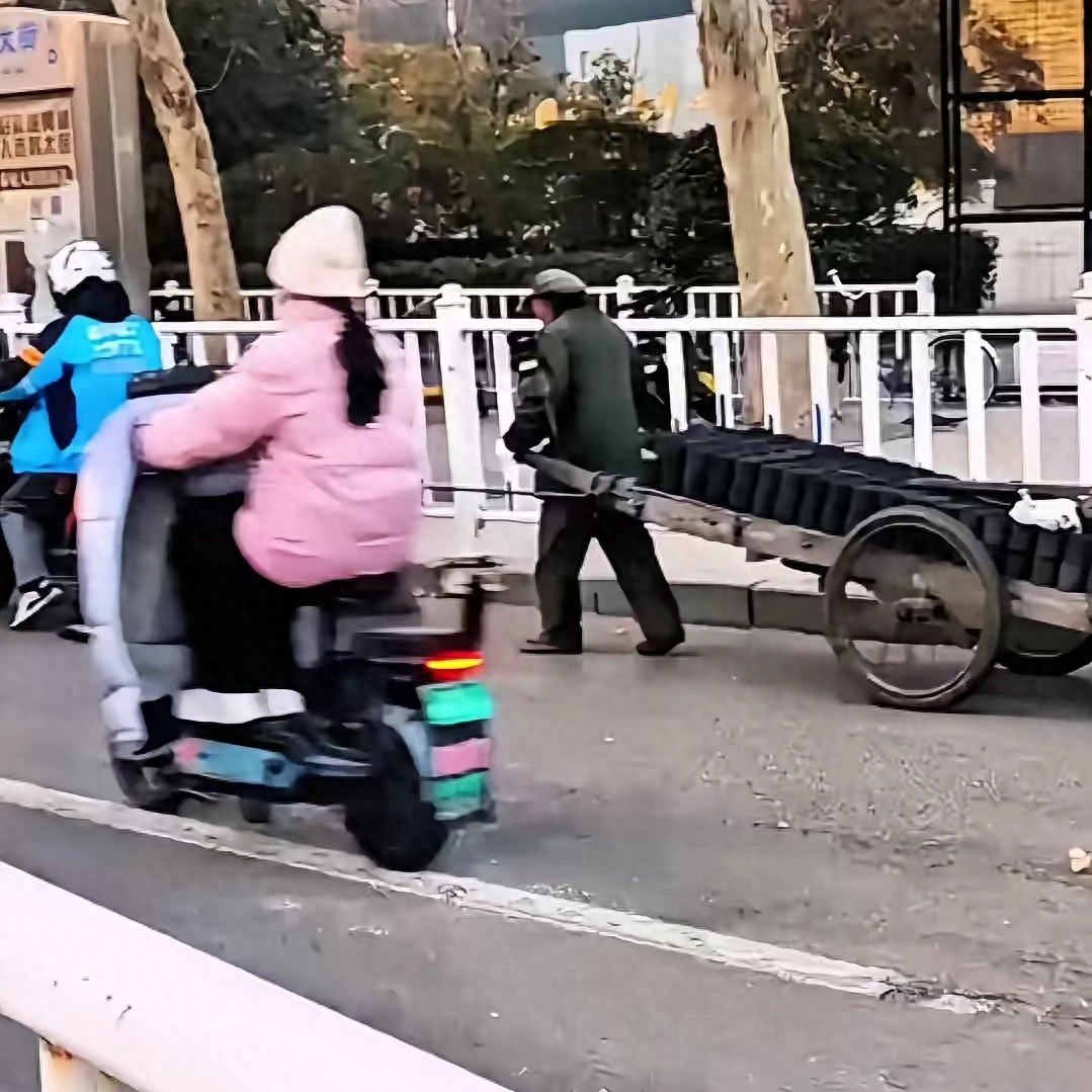 在一个车水马龙的路口,一位老人正拉着满满一车煤球,艰难地前行。那沉重的煤球车,仿佛有千斤重,压得老人步履蹒跚。此时,路口车辆穿梭,老人进也不是,退也不是,被困在路中间,脸上满是焦急与无助。这满满一车煤球,对老人来说或许是生活的重担,可在这繁忙的路口,却成了他难以跨越的障碍。