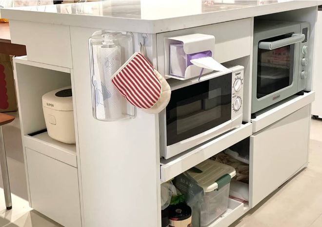 第二种在年轻人中比较流行的厨房家电收纳设计,就是移动式岛台。