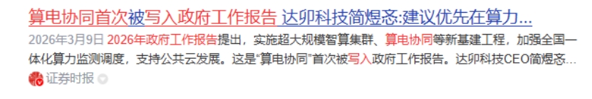 电力股为什么这么猛?除了算电协同首次写入2026年政府工作报告,工作报告明确提出“实施超大规模智算集群、算电协同等新基建工程,加强全国一体化算力监测调度,支持公共云发展,为‘十五五’开局之年的数字经济与能源转型深度融合指明了方向。”这种国家顶层设计加持之外。