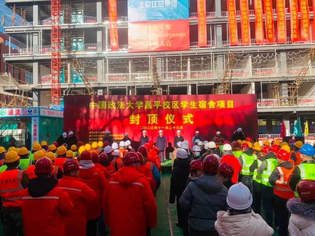 北京高校首个高层钢结构宿舍——中国政法大学昌平校区学生宿舍主体结构封顶 (图源:北京日报客户端)