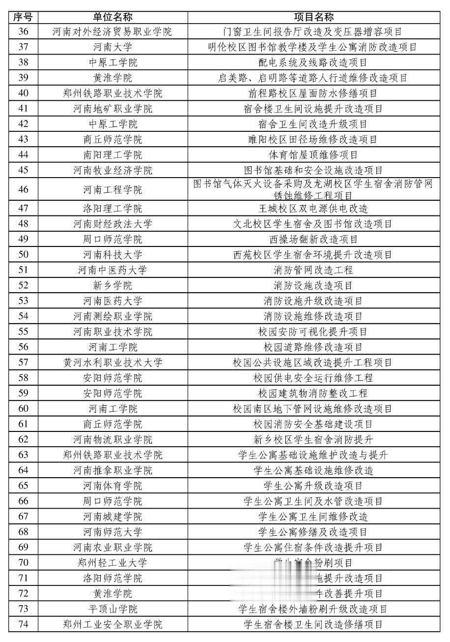河南省2026年度高校办学条件改善与提升项目评审结果公示名单 (图源:河南省教育厅官网)