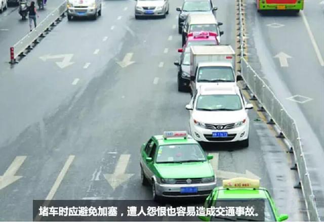 我们不提倡乱插队,但是也别给人家插队的机会。所以堵车时要与前车保持2米左右的车距,别留出太大空隙给其他车辆有机乘。