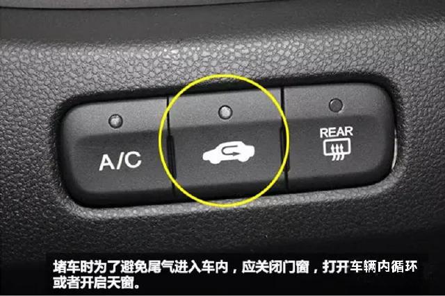 堵车时众多车辆的集中会排放出大量的尾气。为避吸入过量尾气而致身体不适,我们正确的做法是:关闭车窗、开启内循环。如果长期堵车,则要注意内外循环交替使用,以免因车内空气含氧量低而产生晕睡感。