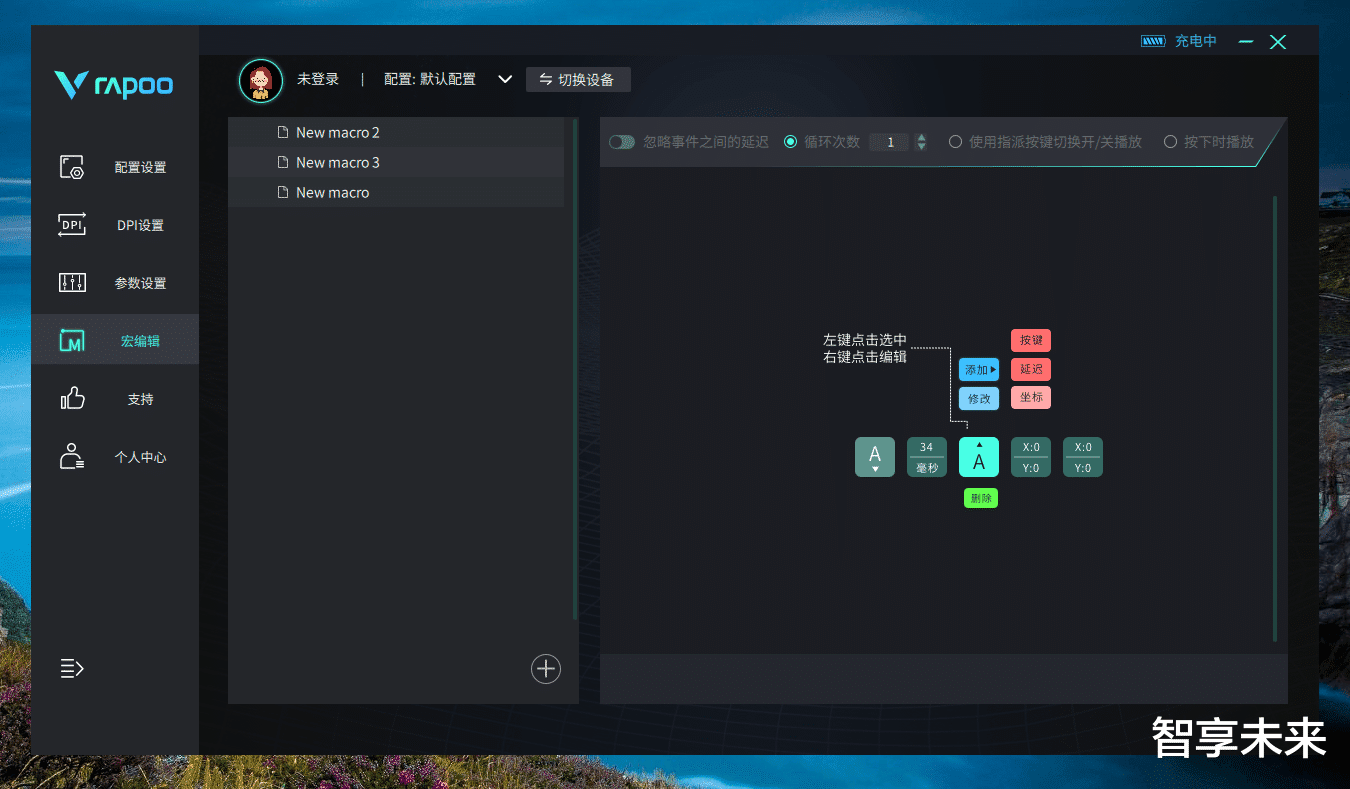 雷柏VT3 PRO MAX双模双高速游戏鼠标通过佩戴驱动软件,可以保存多组配置文件,可以完成DPI、宏定义等多种自定义设置,通过登录V系列智能云存储,可将配置文件上传至云共享给其他玩家。