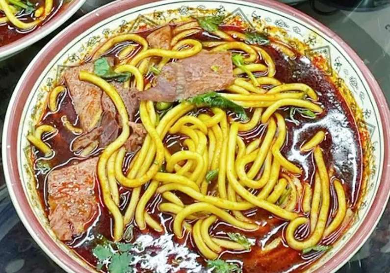 手打的牛肉丸子Q弹爆汁,配上宽面条和牛油辣汤。辣得冒汗,麻得过瘾,最后再来瓣蒜——这才叫吃饭!本地人端着碗蹲在路边吃,连汤都不剩一滴!
