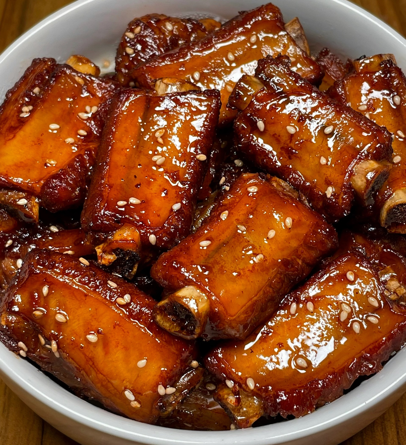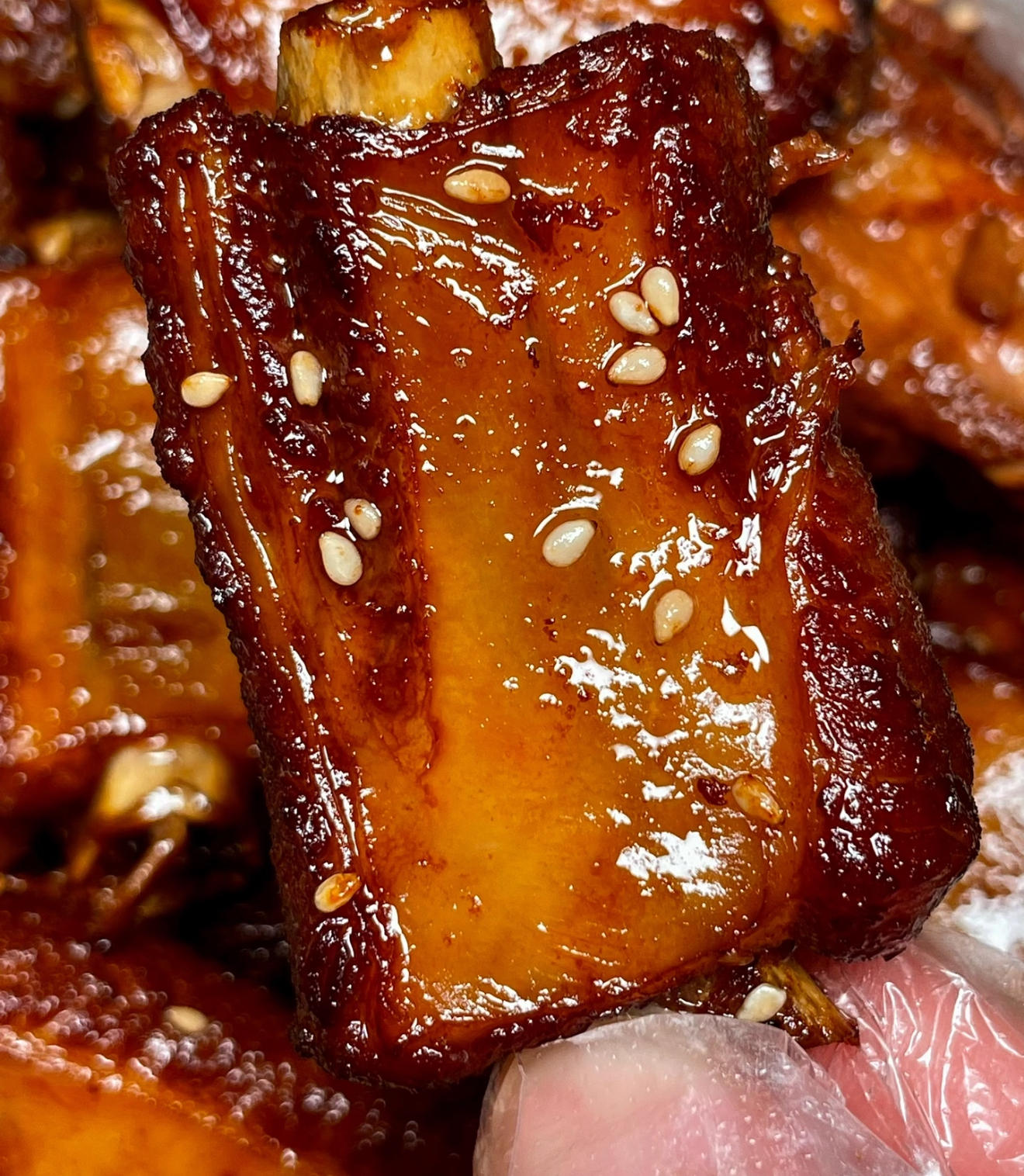 当一盘色泽金黄、香气扑鼻的糖醋排骨端上餐桌,全家人都围了过来。大家夹起一块排骨,放入口中,轻轻一咬,外皮酥脆,里面的肉鲜嫩多汁,酸甜的汁水在口中散开,每个人的脸上都洋溢着满足的笑容。这道家常版糖醋排骨,就像一个幸福的使者,把爱和温暖传递到每一个人的心中。