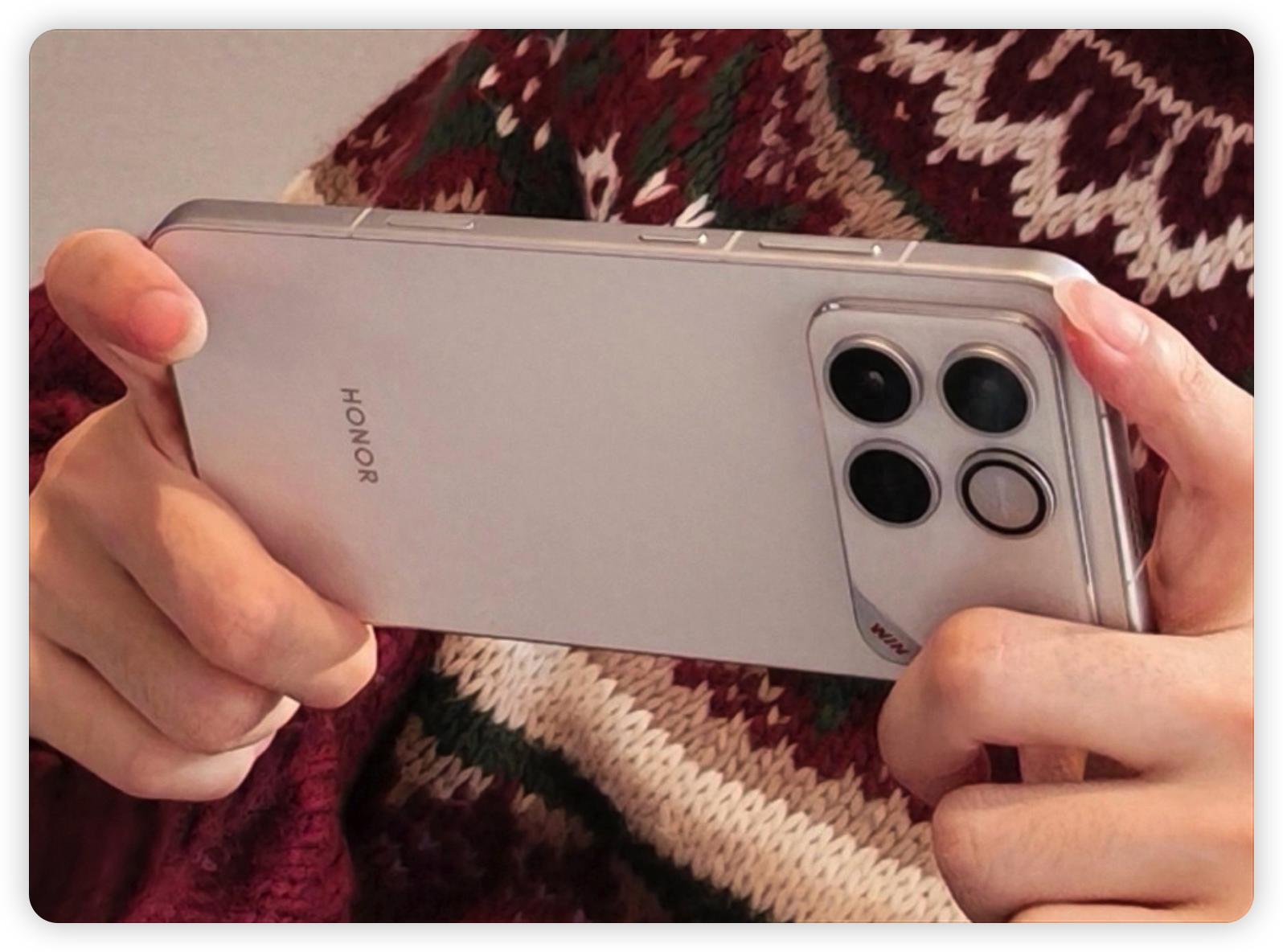 为什么这么说呢?因为荣耀WIN也是骁龙8E5性能旗舰,而且荣耀WIN的外观设计和红米K90系列算是想到一块去了,美好的设计再次发生了,都采用横向大矩阵影像的设计,当然在细节上面二者还是有差异的,最直观的地方就是荣耀WIN的影像模组右下角打上了“WIN”的字眼。