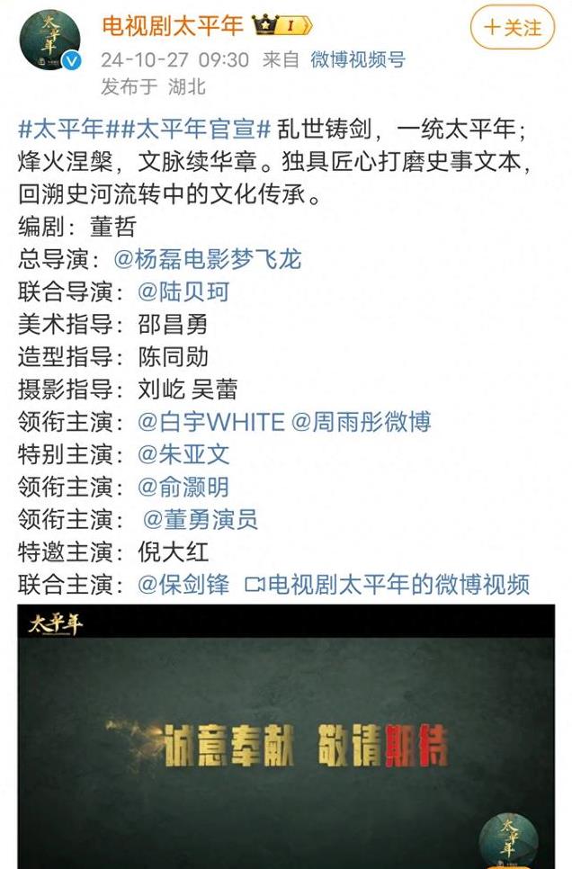 白宇、周雨彤、朱亚文、俞灏明主演的《太平年》是中宣部2024年度文化产业发展专项支持项目、国家广电总局重大历史题材电视剧。可以说,备受关注和期待,也深受重视。