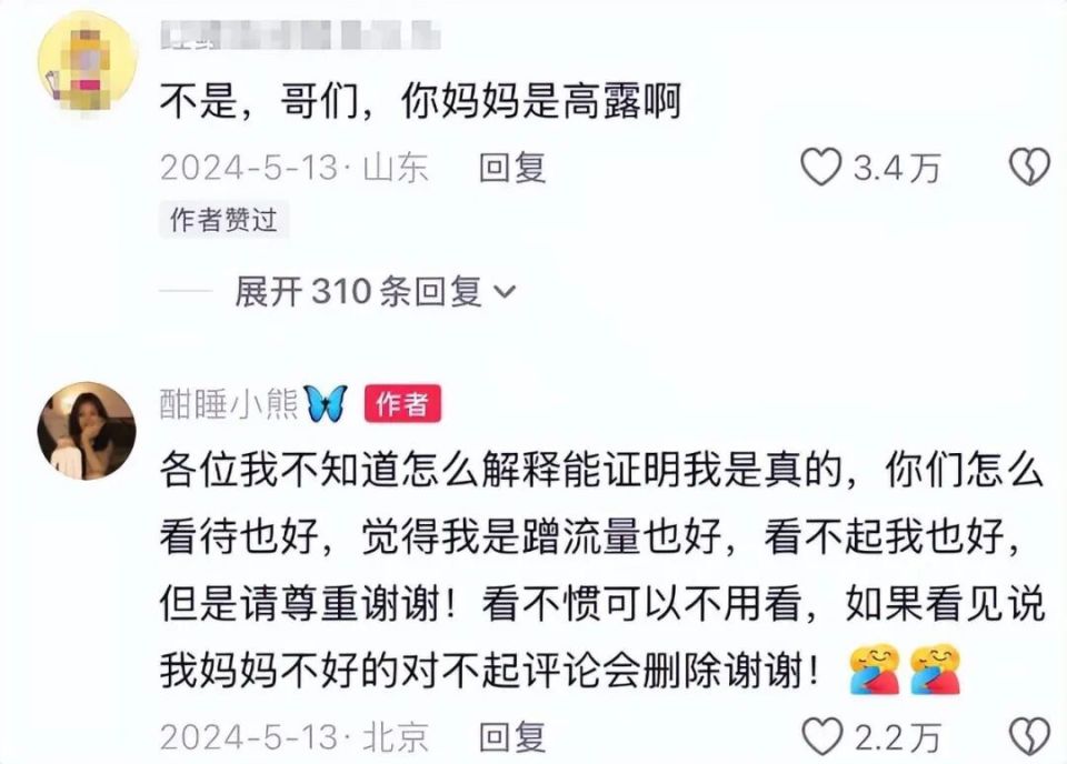 不同于其他星二代的高调出道,高露女儿的出现带着“见见世面”的试探感。