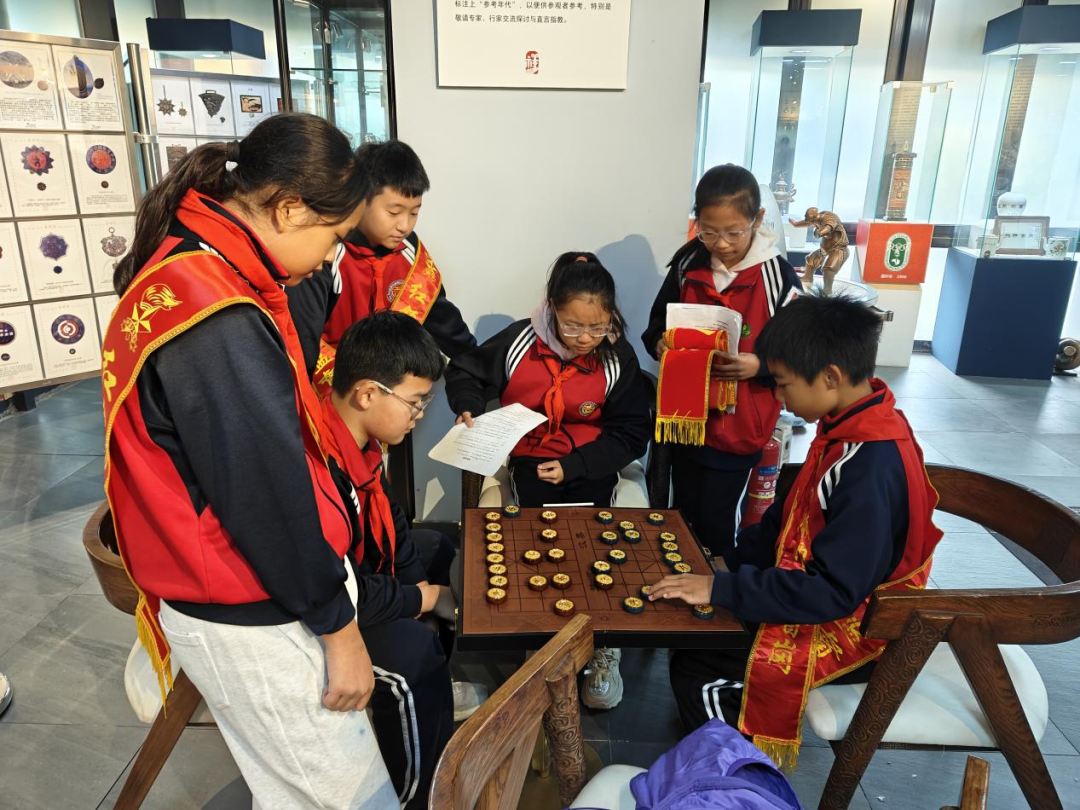 在博物馆的互动体验区,队员们不仅亲身体验了抽陀螺、抖空竹、滚铁环等民俗体育项目的乐趣,还通过象棋、围棋等古代棋具与先人展开了一场“跨越时空的对话”。这场体验远不止于游戏的乐趣,更是一堂生动的实践课,让队员们在参与中切身感受到什么是专注与拼搏,什么是协作与超越。
