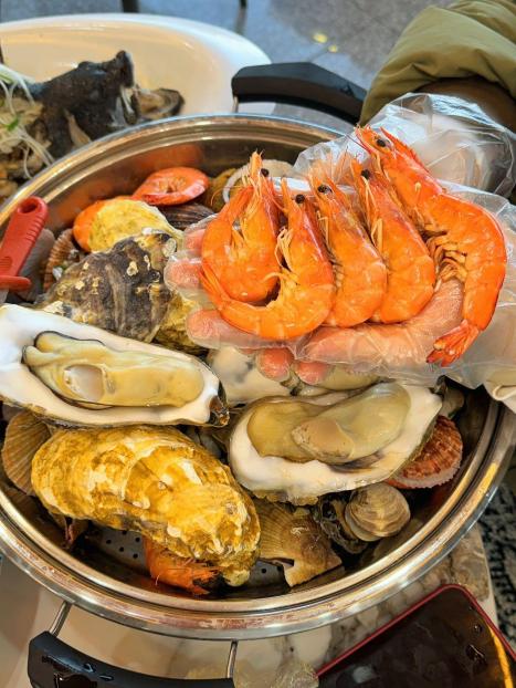 威海海鲜打卡首选巧克力渔家!作为人气连锁品牌,他家坚持现捞现做,新鲜度没话说。推荐试试香辣石斑鱼,鱼肉紧实细嫩还带点微辣,配上清爽解腻的鲜虾疙瘩汤,一口鲜汁一口暖胃,回头客超多,来威海一定要尝一次巧克力渔家。