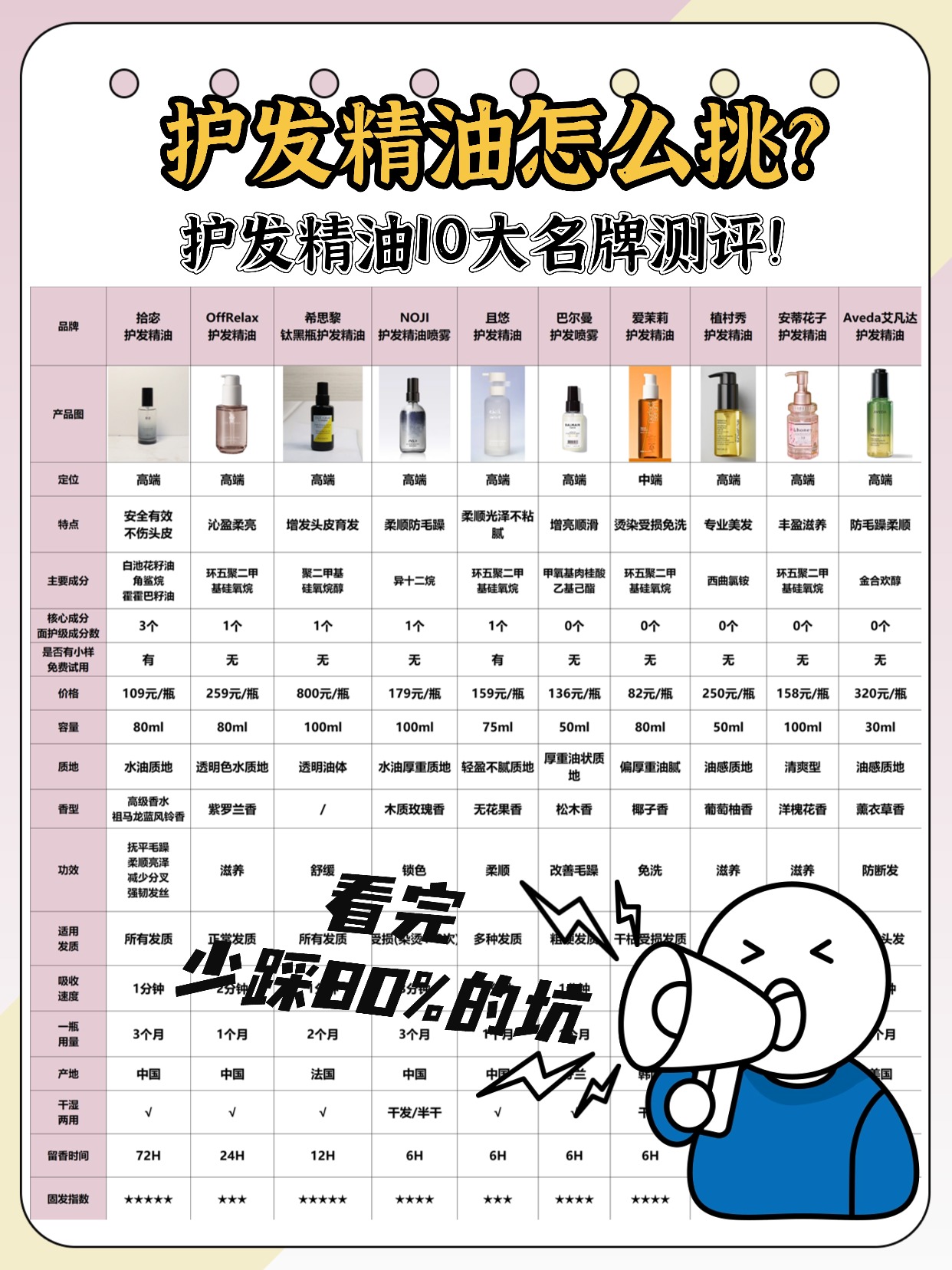 总有人问什么护发精油好用,还纠结护发精油有必要买贵的吗?作为测评过超多款的人来说,真不是贵的就一定好!关键得看成分和质地,像白池花籽油、霍霍巴籽油这些天然植物油成分就很安全好用,很多平价产品里都有,反而有些贵价精油加了一堆香精和多余添加剂,用着还黏手。而且不同发质需求不一样,细软发质要选轻盈质地的,干枯发质可以选滋养度高些的,但不管啥价位,用量都得控制,1-2 泵足够。我之前踩过坑,花大价钱买了所谓的名牌精油,结果质地厚重涂完超油,后来换了平价的轻质款,反而顺顺滑滑。千万别被 “名牌”“高价” 绑架,成分才是核心。接下来分享自己选购护发精油时的一些经验,都是实测干货,感兴趣的可以蹲蹲。