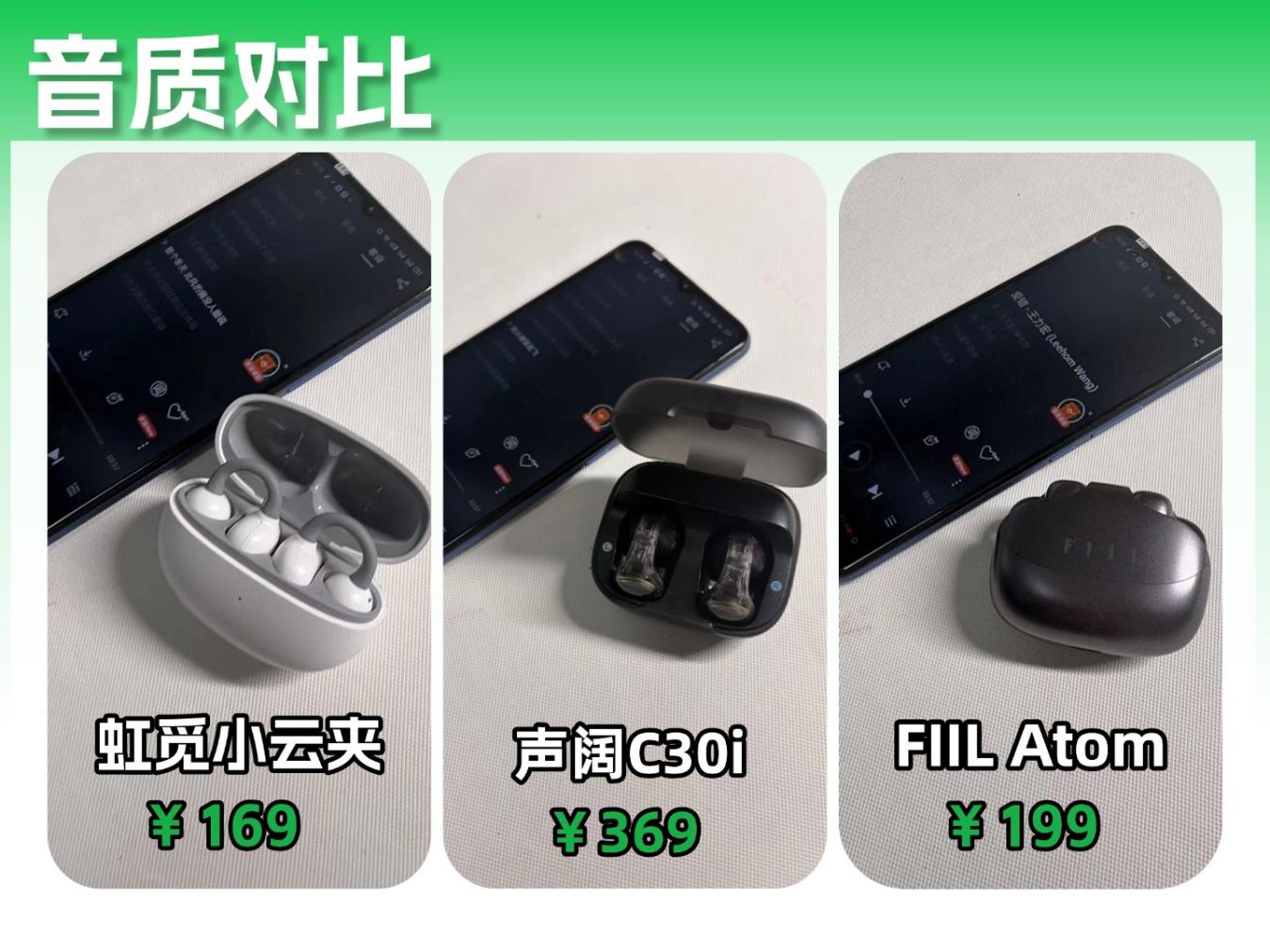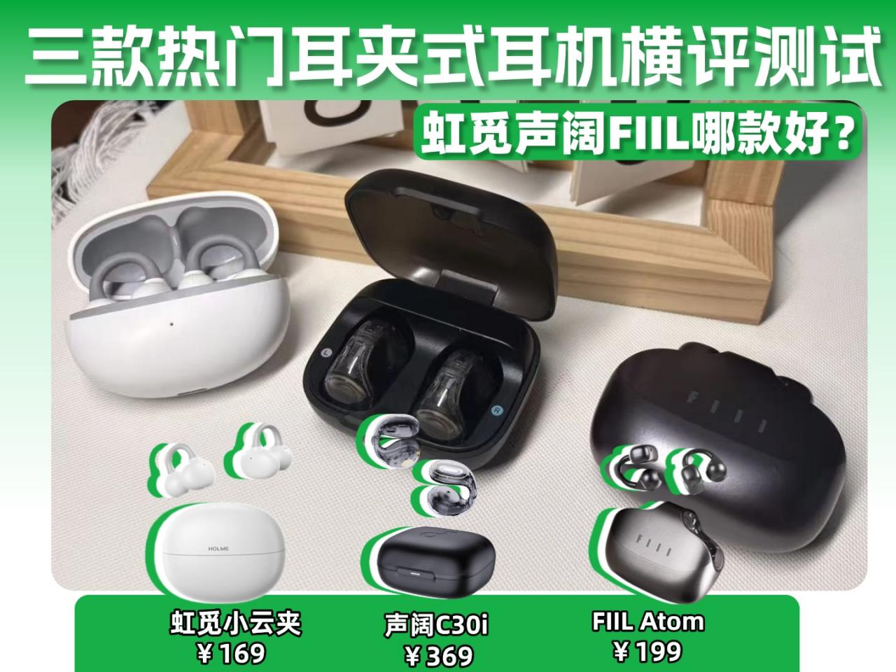 这次专门挑了三款最近卖得火、价格也比较亲民的机型来对比,分别是 169 元的虹觅 Air2 小云夹、199 元的 FIIL Atom 和 369 元的声阔 C30i,打算从佩戴、音质、续航这些大家最关心的点好好测一测,看看哪款真的值得入手。要是你也在纠结选哪款,看完这份实测,说不定就能有答案了。