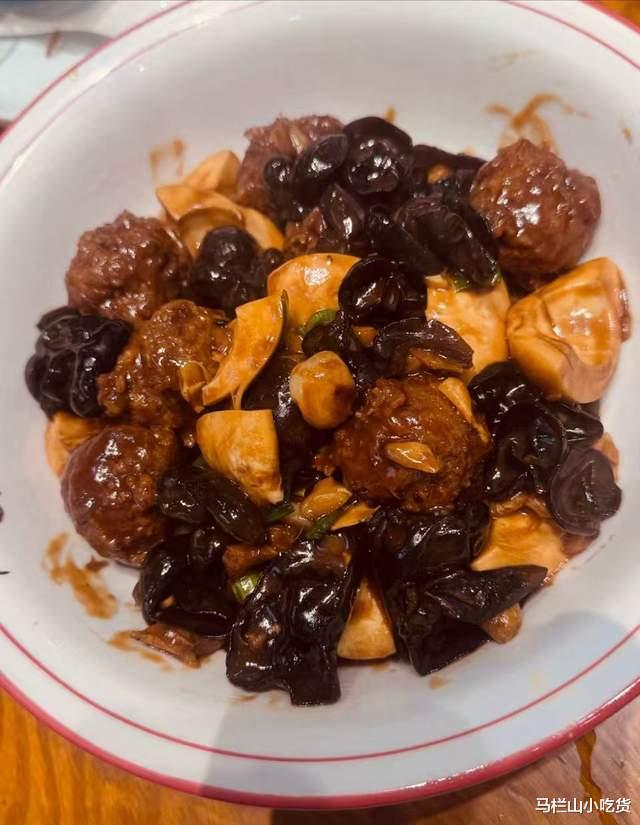 厨娘狮子头:狮子头,手工现做,肉质紧实弹牙,咸香的汤汁一起焖,肉丸吃起来细腻,木耳脆爽,鸡蛋嫩。