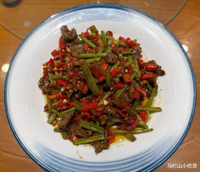 小炒小黄肉:黄牛肉,切的细碎,搭配芹菜和小米椒一起爆炒,一勺黄牛肉,和米饭真的是超级搭,下酒也是好菜。
