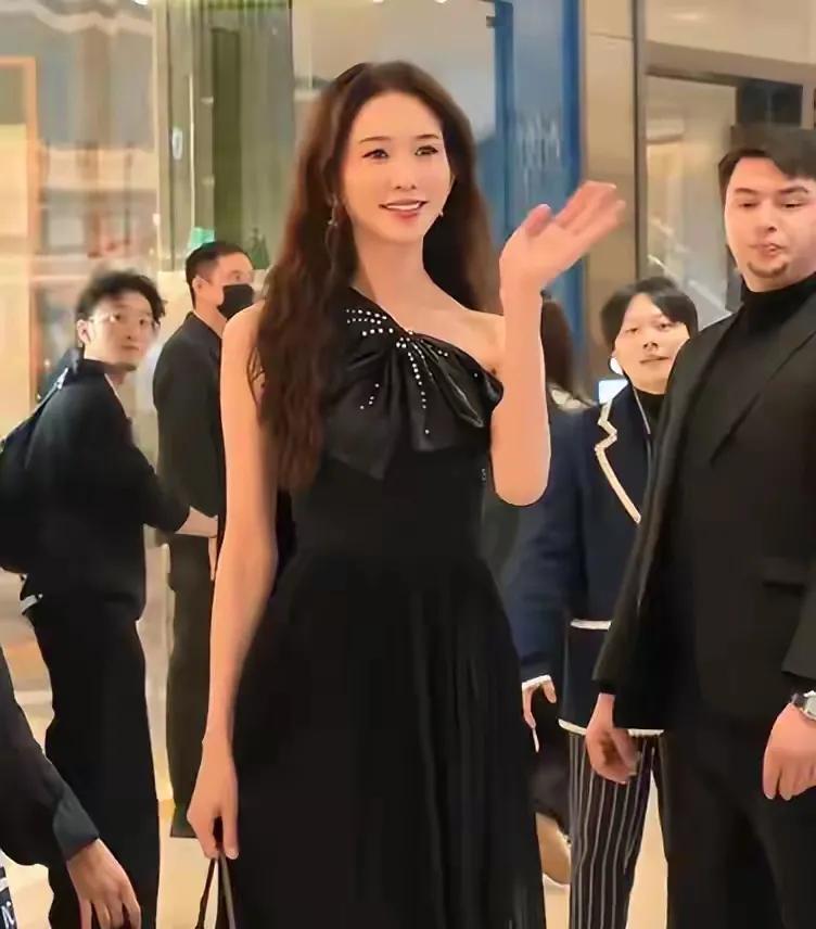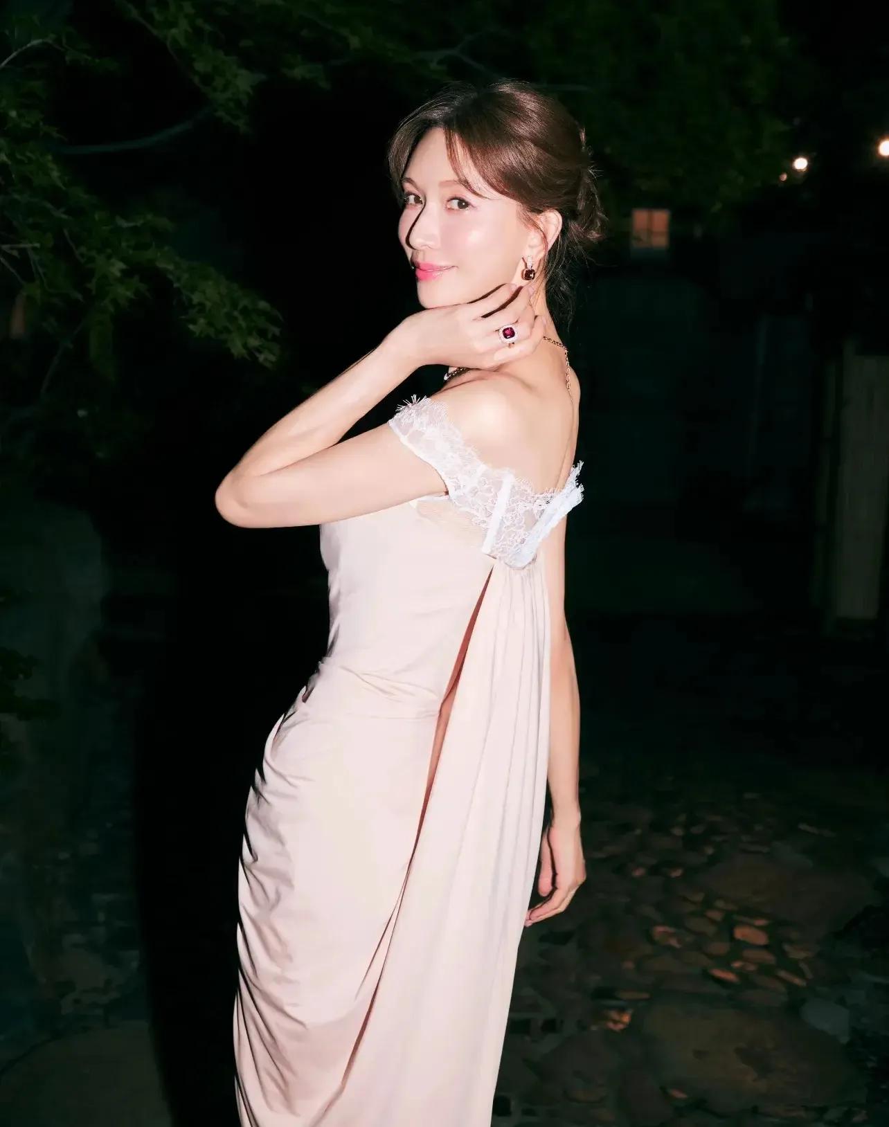 穿着低胸短裙拍完照,并完成相应活动之后,林志玲换上了一套非常能体现自己温婉大气特点的礼服。