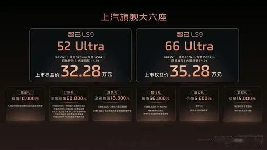 11月12日,“上汽旗舰大六座”智己LS9正式上市,新车共推出52 Ultra和66 Ultra两款增程版车型,上市权益价分别为32.28万元和35.28万元,较预售价格下降了1.4万元。