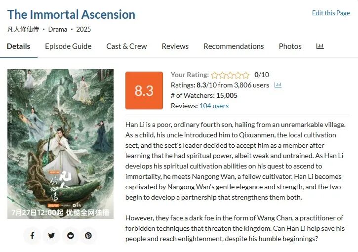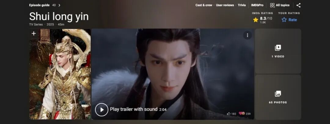 值得注意的是,随着仙侠、玄幻等子类型的成熟,古装剧在海外评价体系中的表现也愈发突出,甚至出现“墙外开花”的现象。