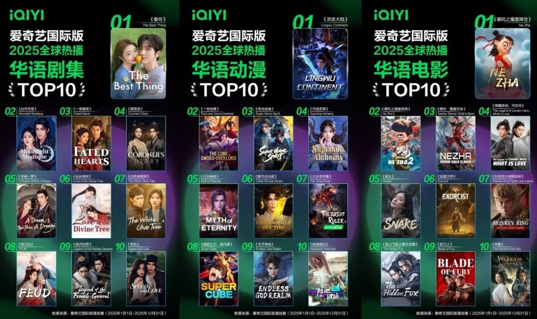 去年,《爱你》力压一众古装剧,成为爱奇艺国际版2025全球热播榜TOP1。该剧将“中医文化”嵌入情感叙事,在提供新鲜文化元素的同时,通过亲密关系与个体情绪建立共鸣,呈现出文化内容与情绪表达的双重“可翻译性”。
