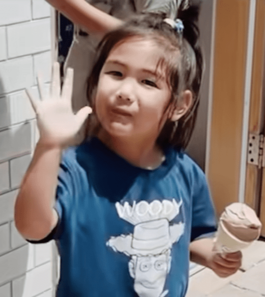 三妹看着长大了不少,小妮子扎着小揪揪,她同样拿着冰淇淋,对着镜头挥手打招呼,老练的模样简直萌翻众人啦。三妹Cora越长越漂亮,是十足的高颜值萌娃。