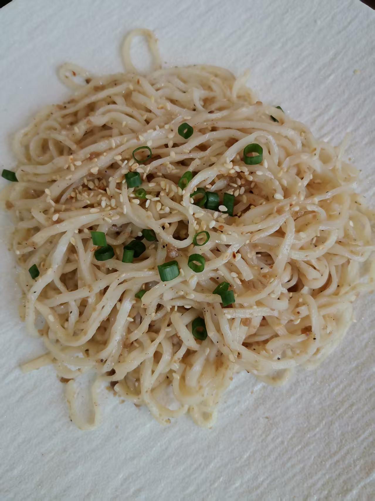 2. 高温快炒去腥:将鳕鱼面倒入锅中,大火翻炒1分钟逼出多余水分,此时添加1/4茶匙白胡椒粉,中和碱性腥味物质。