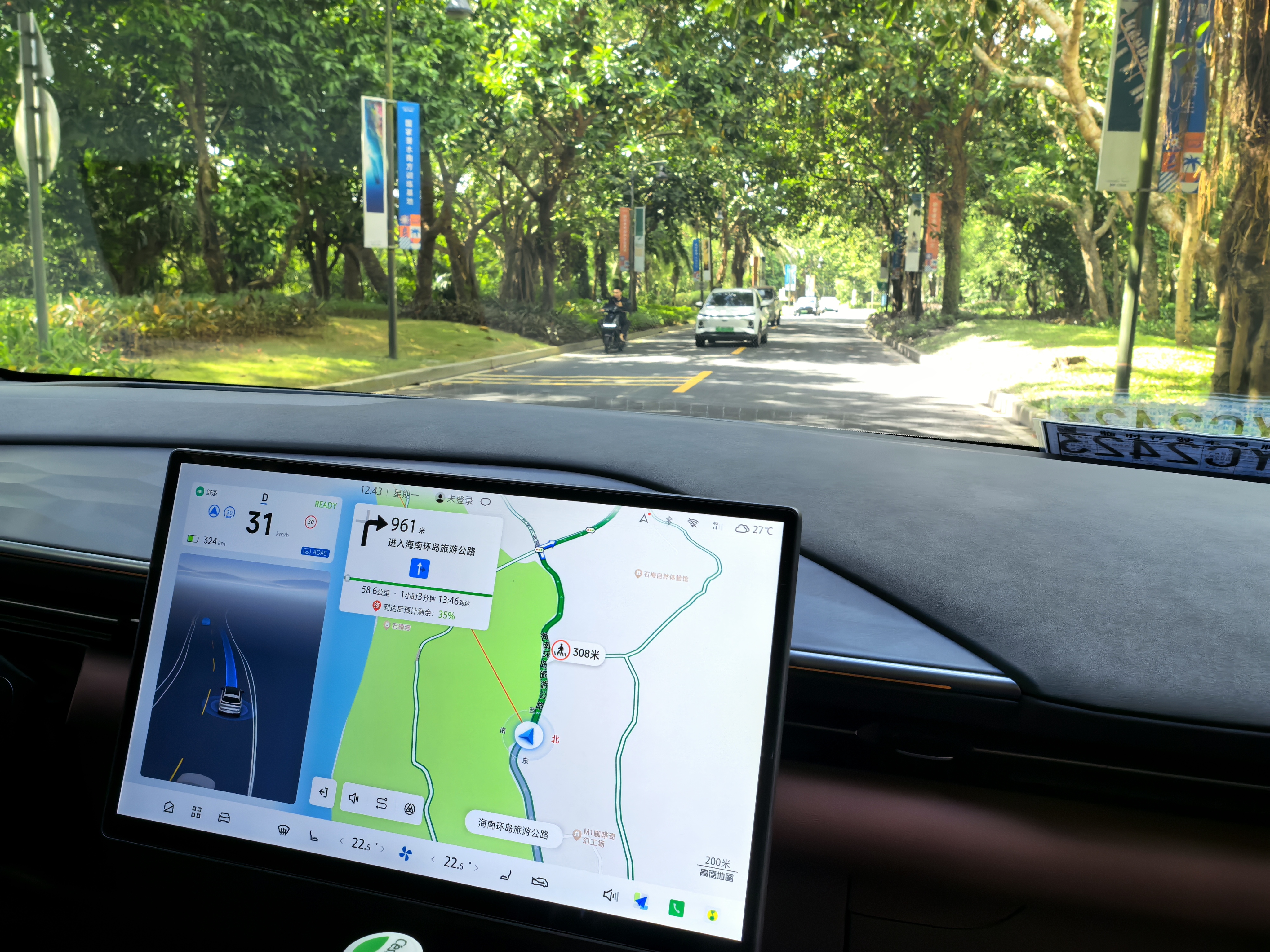于是这次在三亚,我就详细体验了极狐阿尔法 T5 的智驾,路线包含了城区道路、高速,以及乡镇机非混行路段。先说结论,它给我的第一个印象就是“稳”。