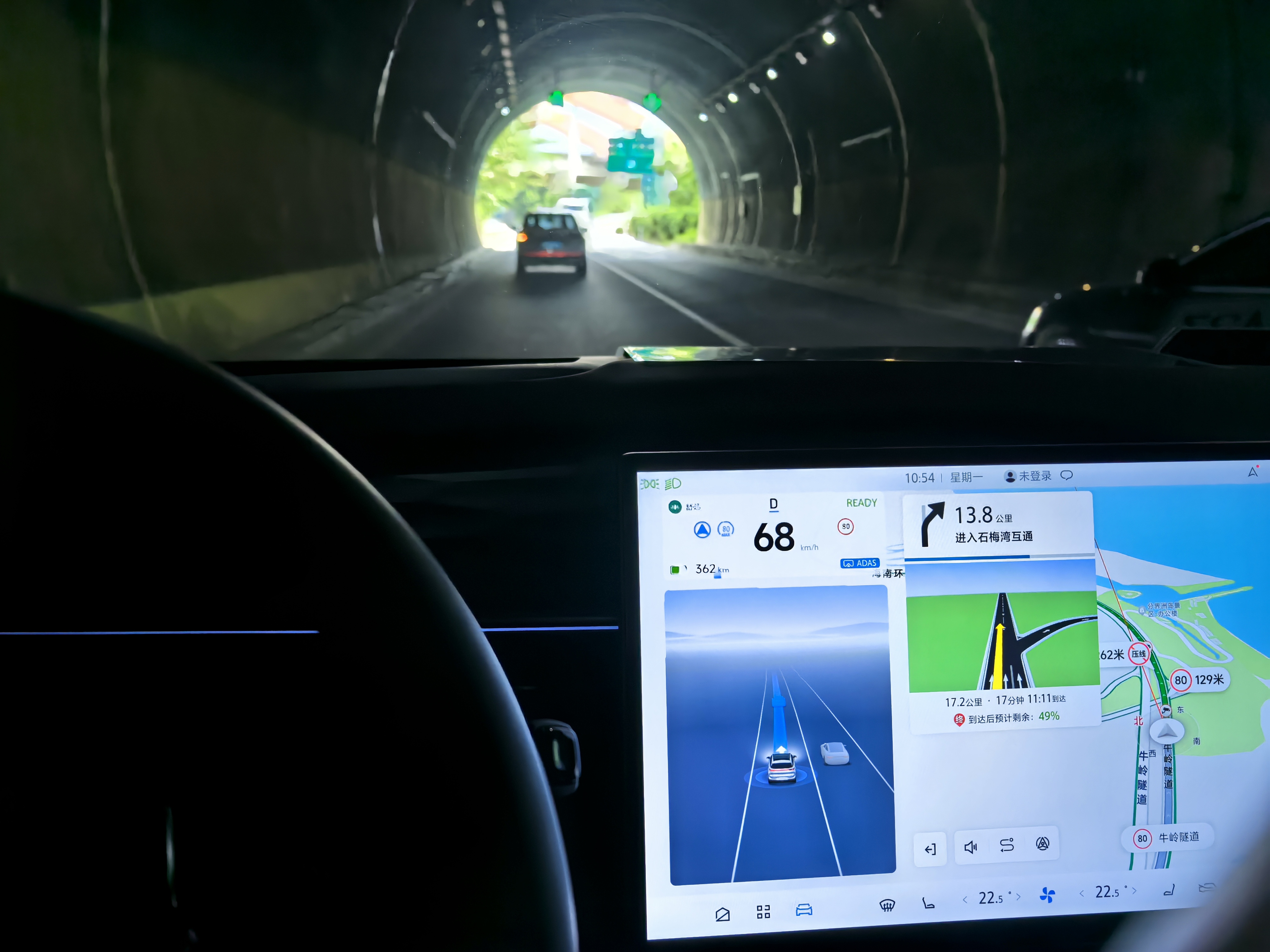 就算是遇到隧道口明暗交替这种纯视觉方案的困难场景,我试下来体验也是完全没有问题。