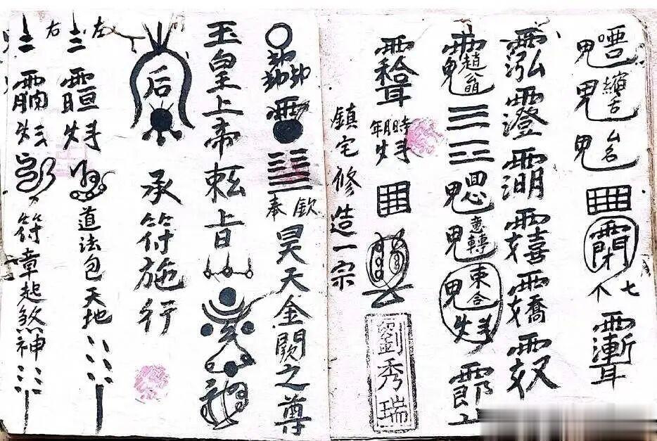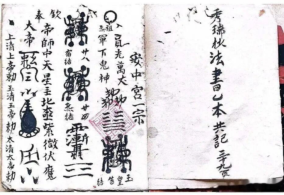 道家符咒古籍《道家法书》大清光绪壬辰年老道长刘法通、刘秀瑞传承39页双页版[红包]9内容:安中宫一宗,中宫一宗,开山木符式,中庭符式,马宫白蛇符秘,朱帥符秘,关帥月刀符,赵公符,镇宅修造一宗,和合符神旺店,缘簿遂一宗等。