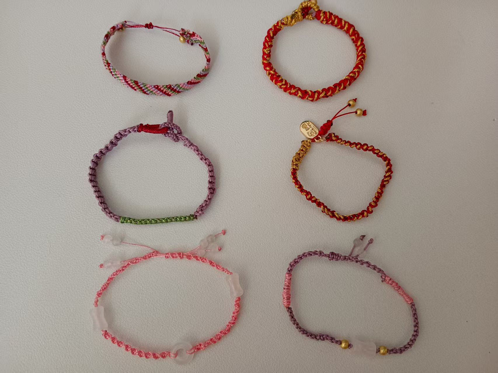 到了中年,真的是不自觉的喜欢传统的物件,例如前段时间做了宋錦饰品,又看着别人编手绳,不停的自学中,下面来一张近期编的手绳“集体照”