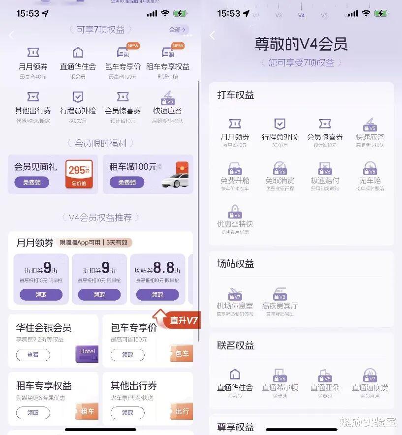 近日,滴滴升级了会员体系,推出五大权益类别,超二十项会员权益,V7、V8用户提供希尔顿、华住会、亚朵等酒店会员权益互通,以及海底捞会员权益互通等跨界增值服务,覆盖更全面的“吃、住、行”生活场景。