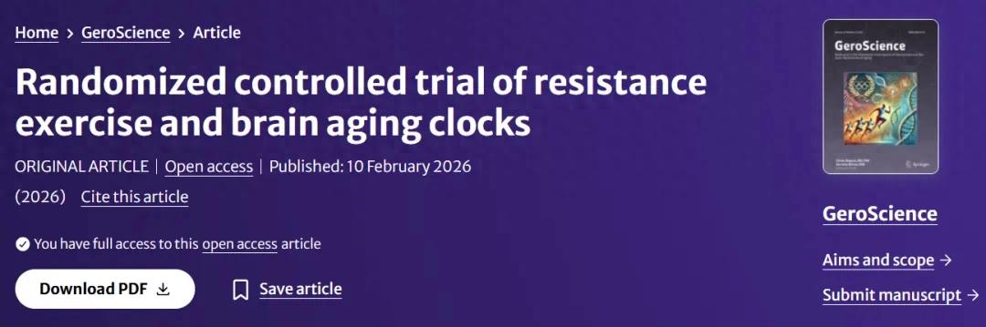 坚持一年抗阻运动,大脑“年轻”2.3岁2026年2月,国际期刊《老年科学》(GeroScience)发表的一项研究显示,“抗阻运动”真的是对大脑有用的“逆龄运动”!实验发现,坚持抗阻运动一年后,大脑“年龄”可以年轻约2.3岁。那些没有进行抗阻力量锻炼的人,则没有这种“逆龄”效果。