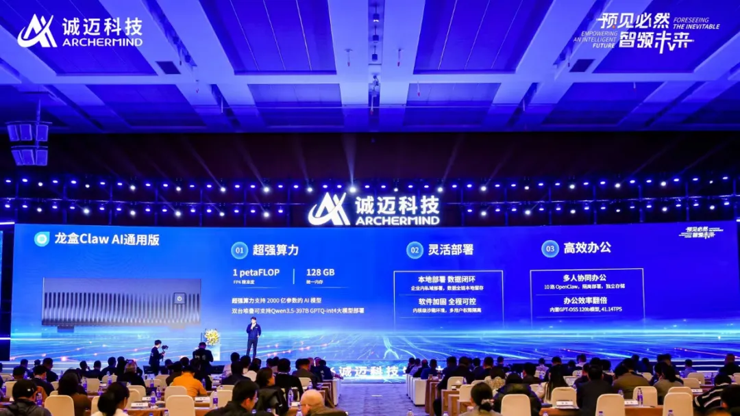 大会现场,不同嘉宾从各自维度勾勒出AI发展的宏观图景。而诚迈科技则在大会上发布了“龙盒”系列产品,将上述共识转化为可落地的答案——用龙虾盒子“养龙虾”!